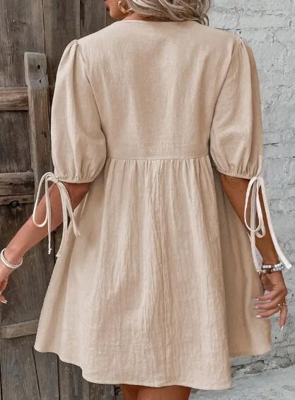 V-Neck Tie-Detail Puff Sleeve Mini Dress