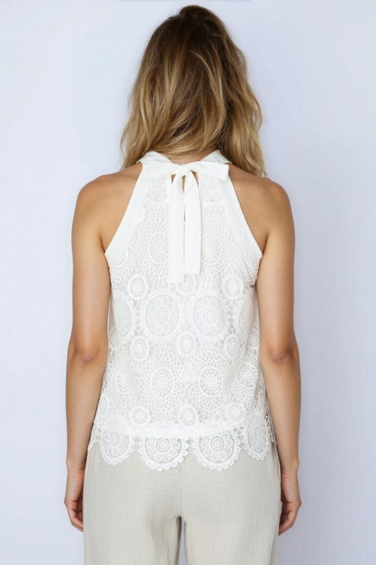 Miss Sparkling Lace Halter Neck Sleeveless Top