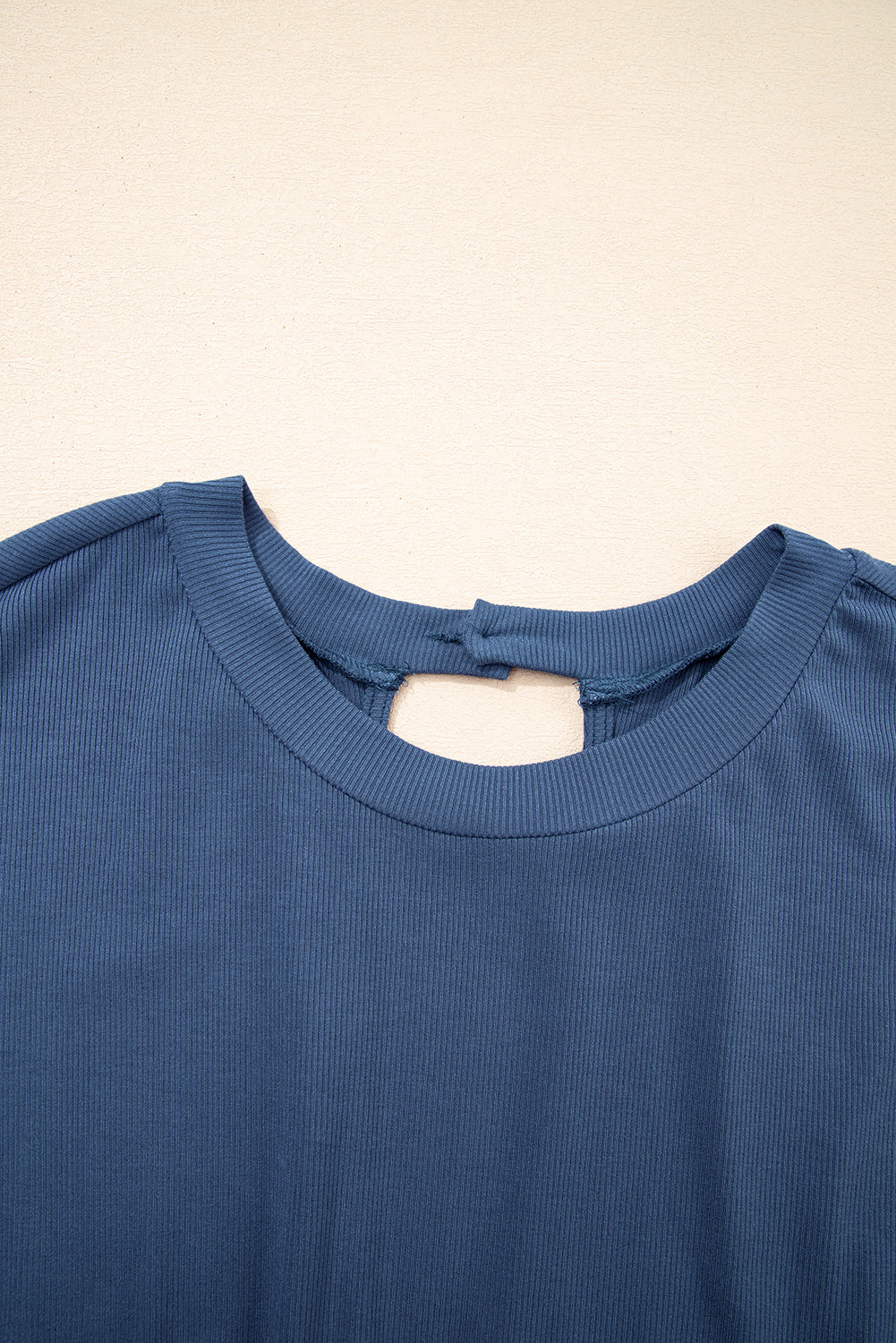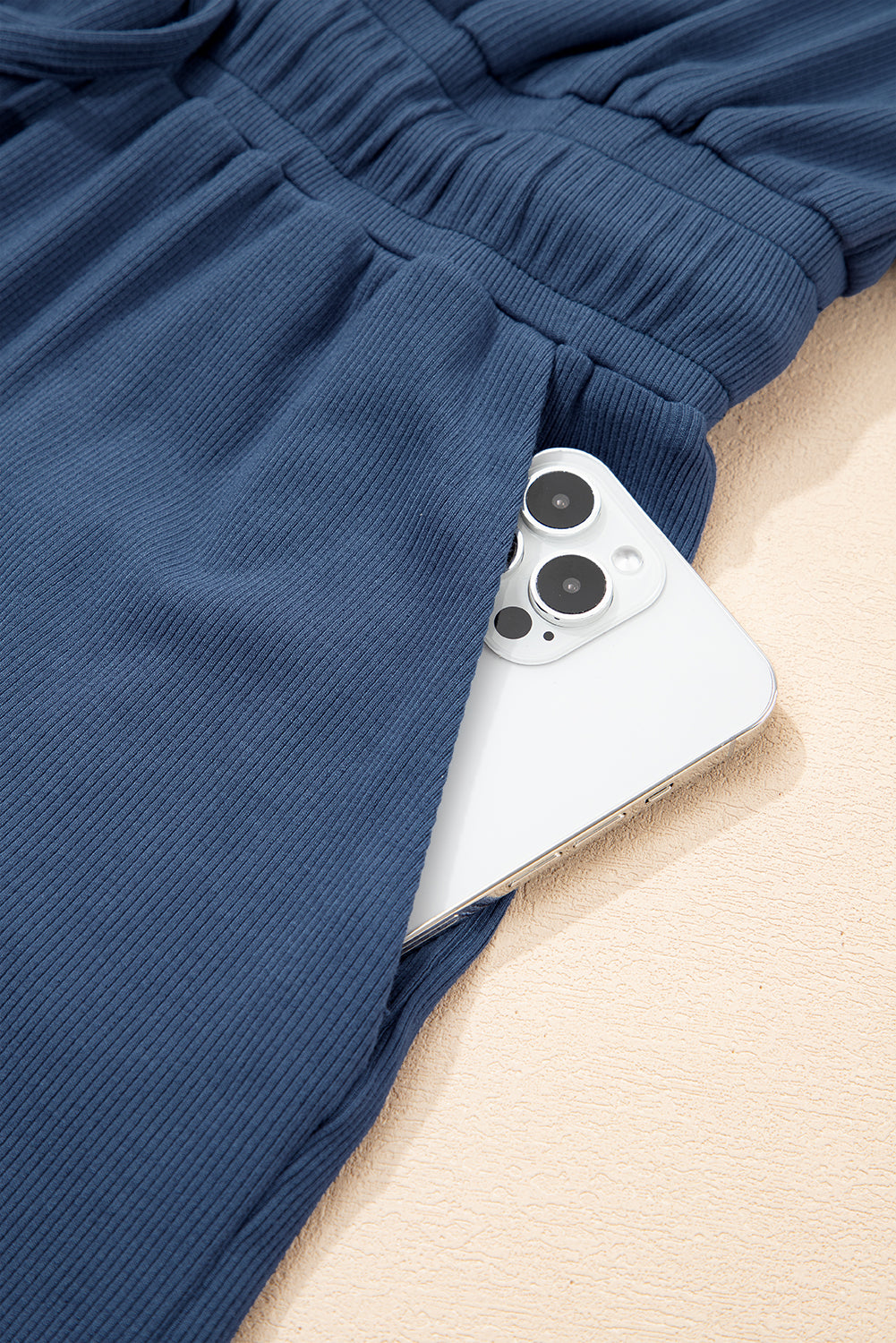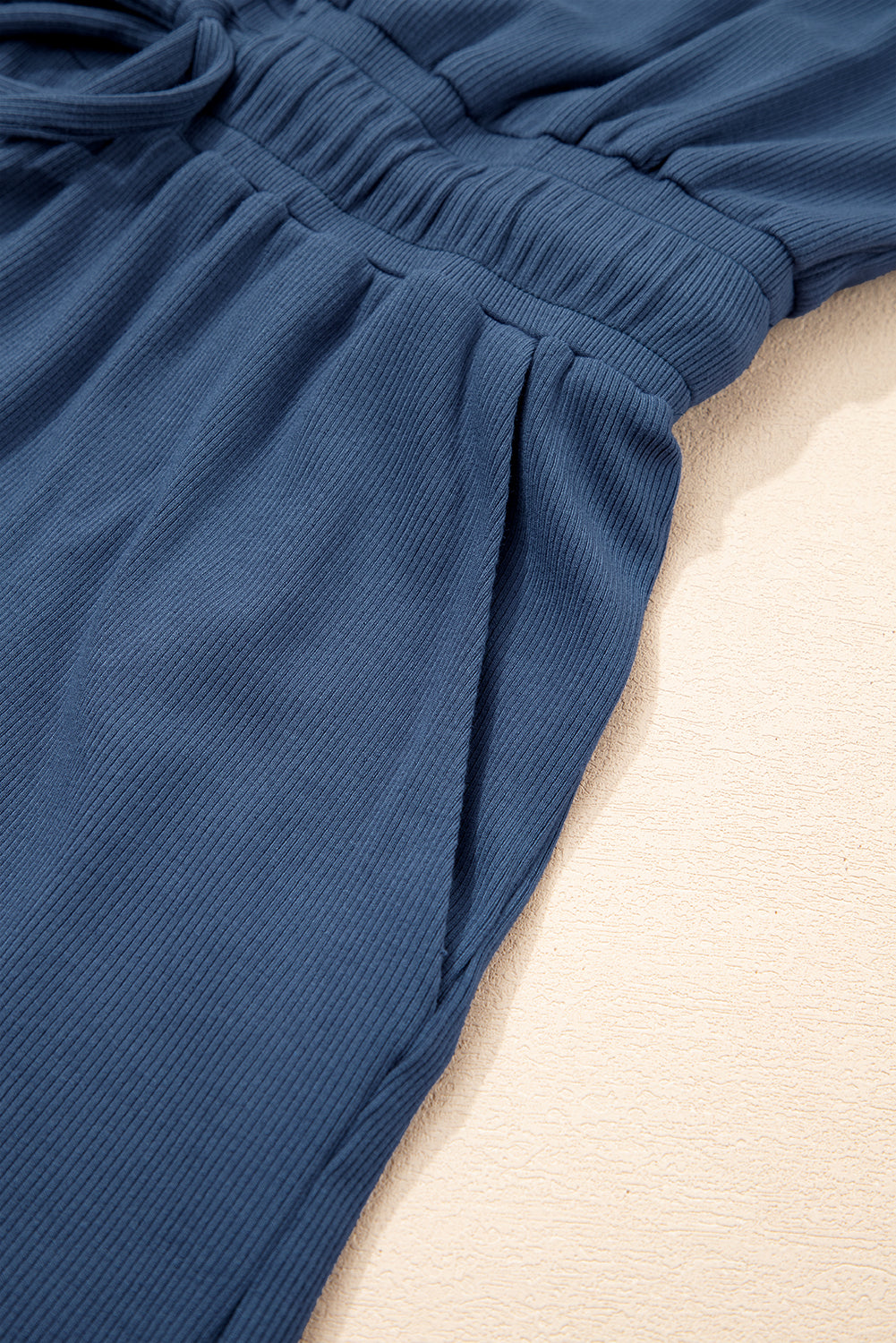 Ashleigh Blue Knit Open Back Cap Sleeve Drawstring Romper