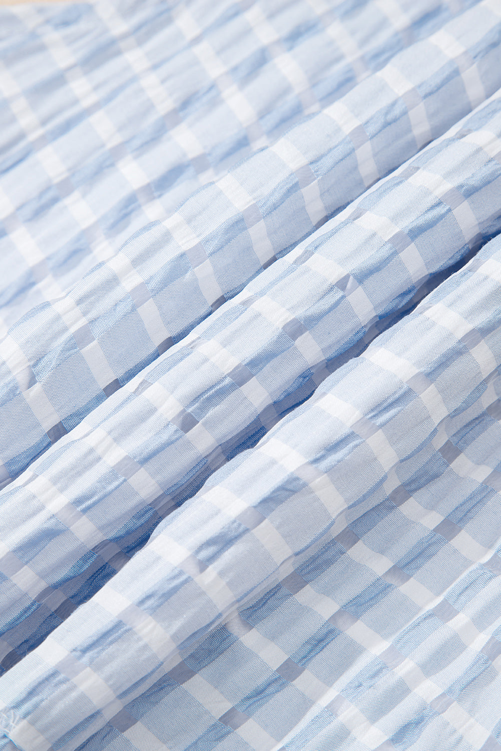 Light Blue Plaid Tiered A-line Sleeveless Mini Sundress