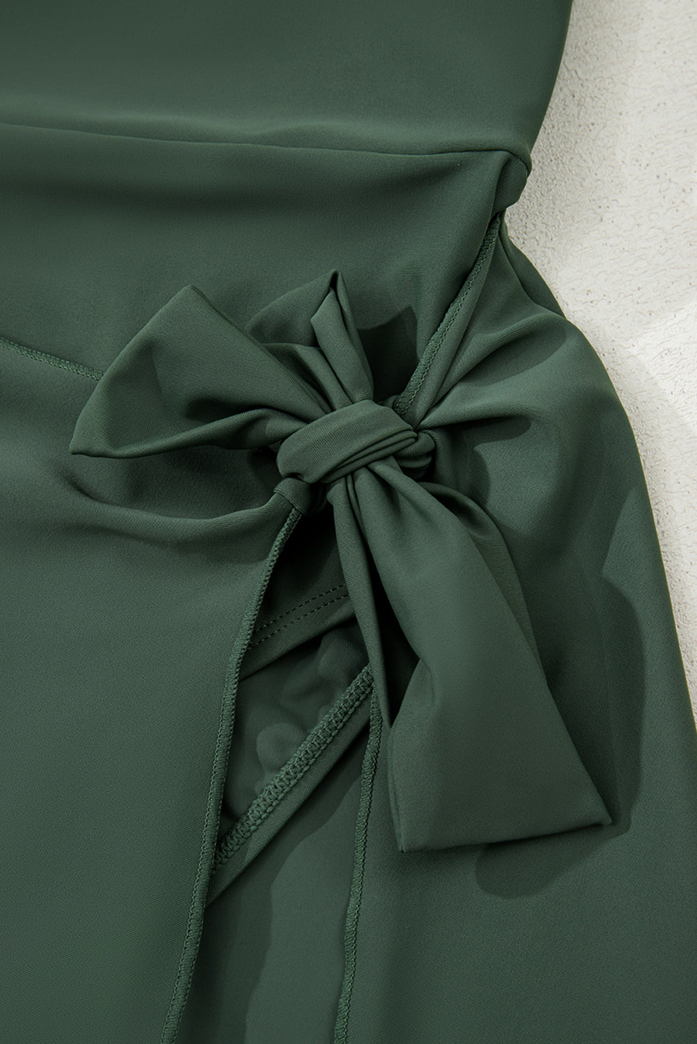 Mist Green Side Tied Waist Square Neck Adjustable Straps A-line One Piece Swim Dress