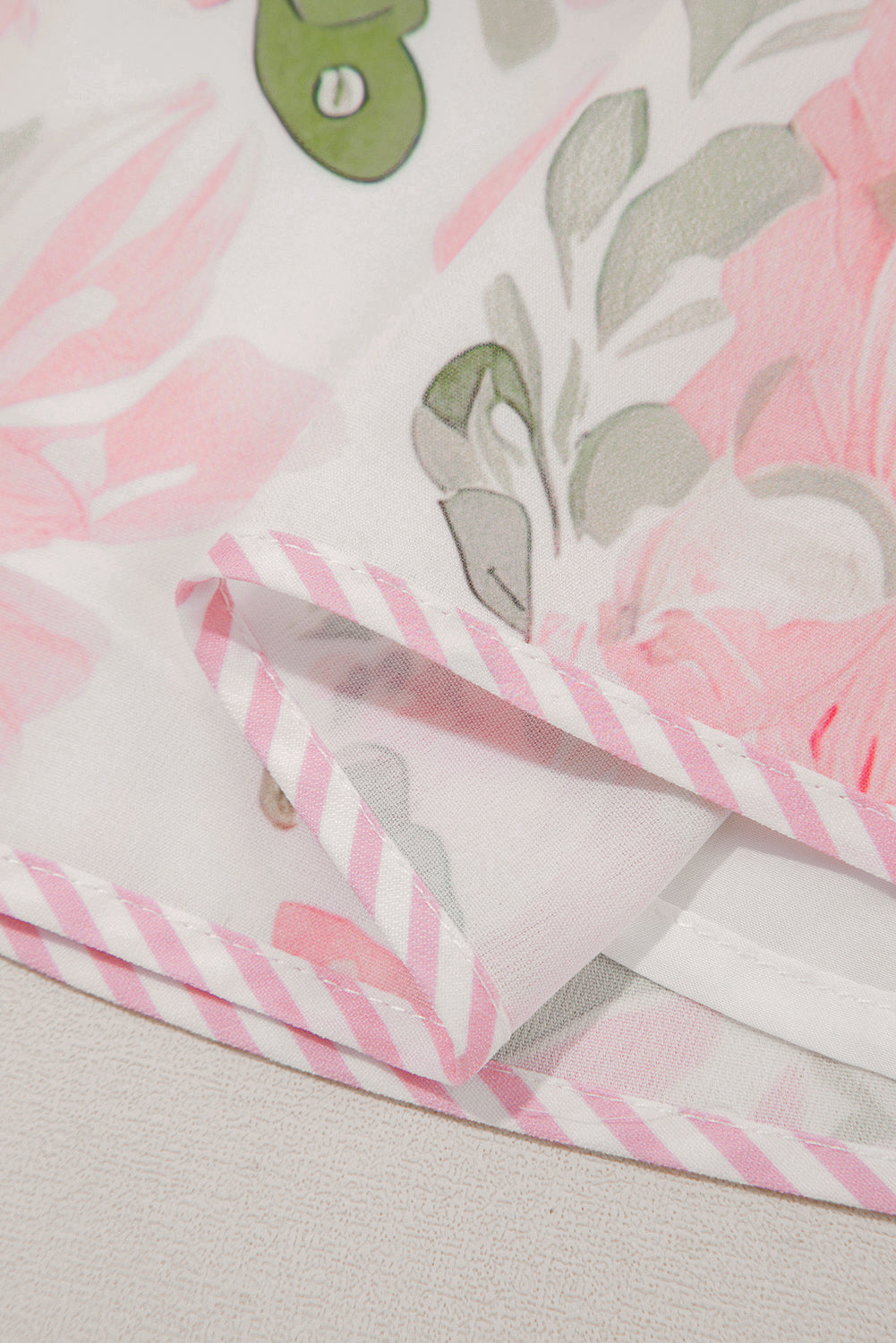 Pink Floral Contrast Edge Layered Short Sleeve Mini Dress