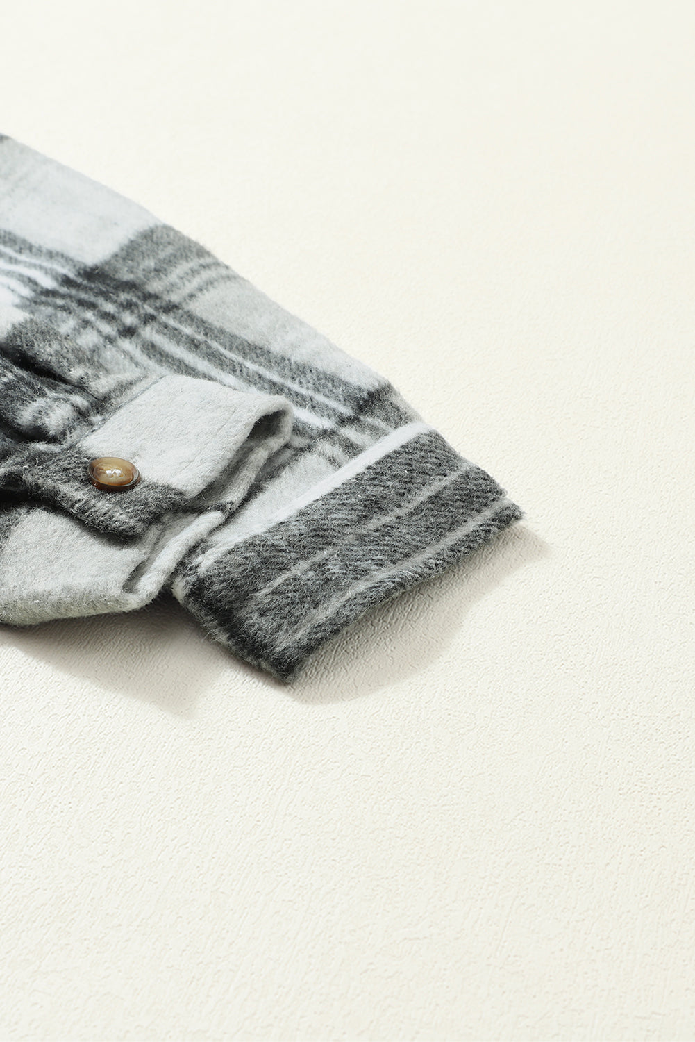 Pink & Grey Plaid Button Up Collared Flannel Shacket