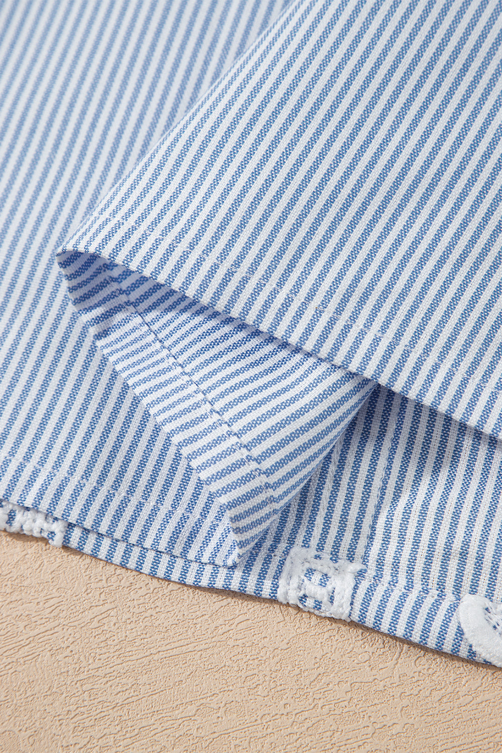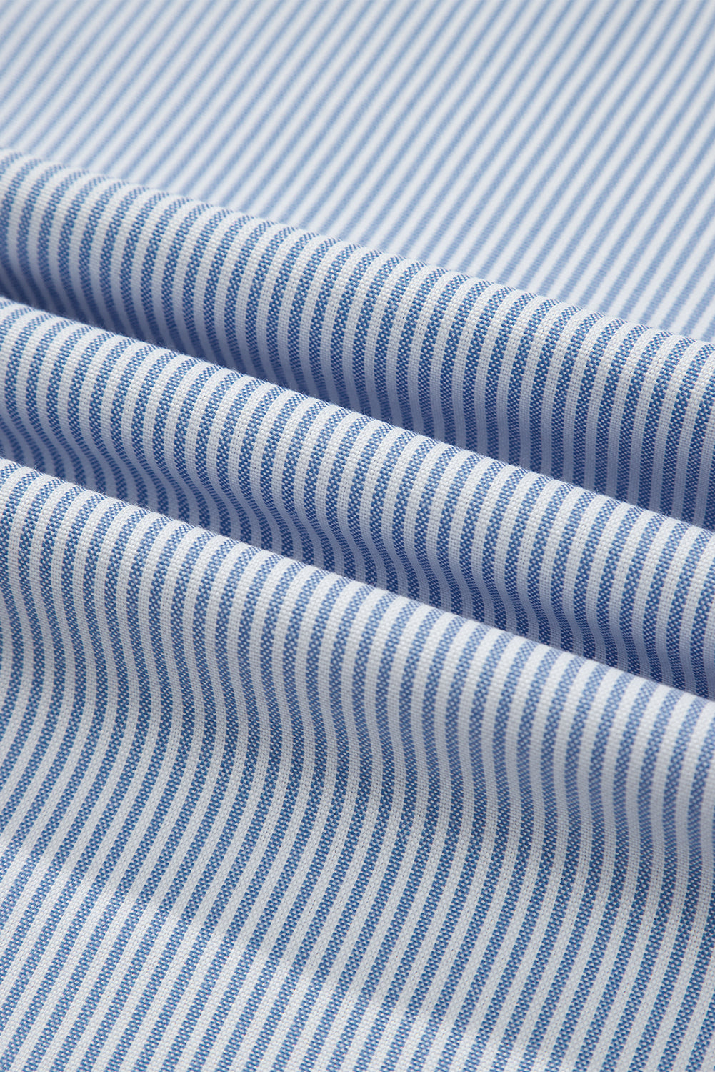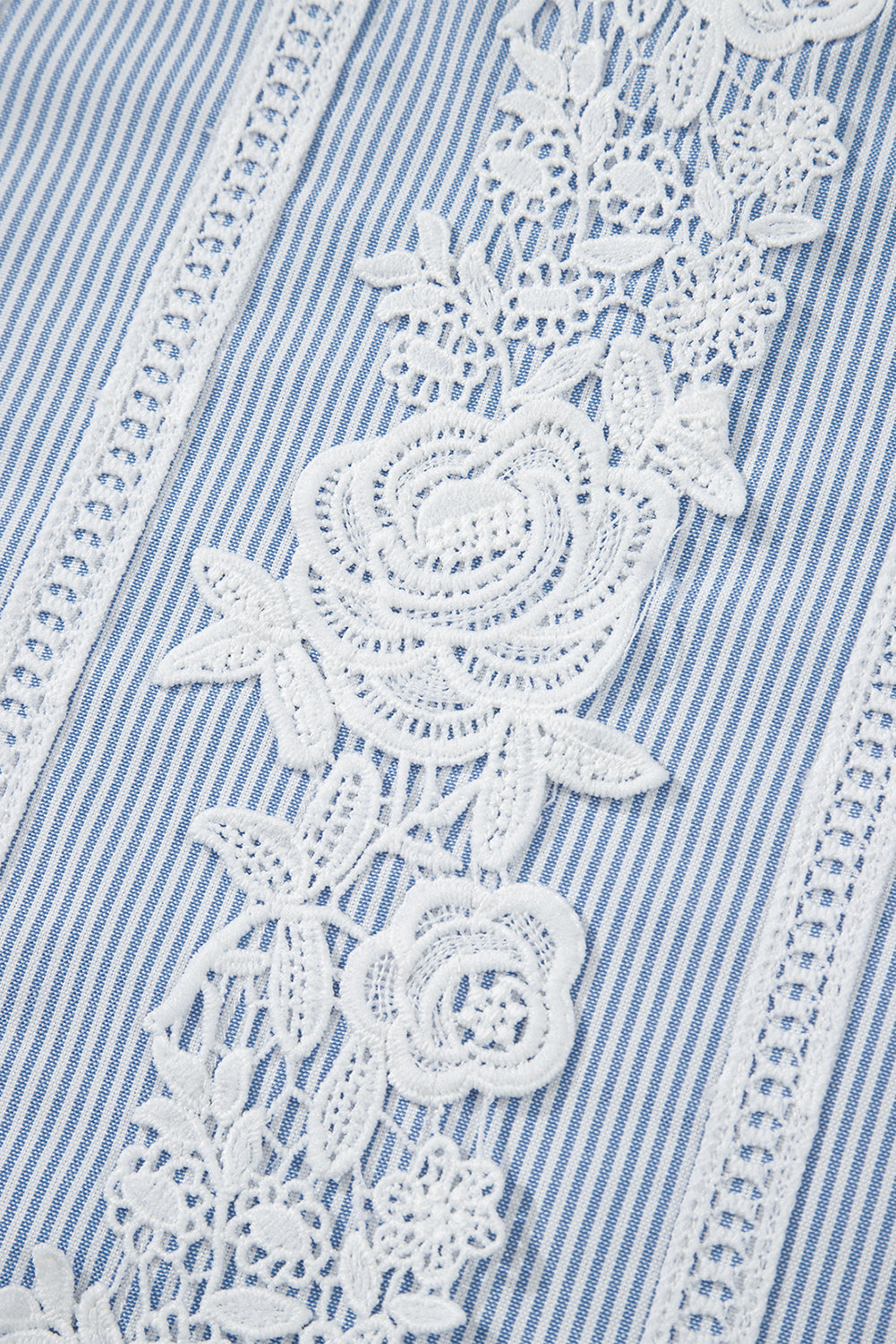 Sky Blue Stripe Floral Lace Splicing Puff Sleeve Blouse