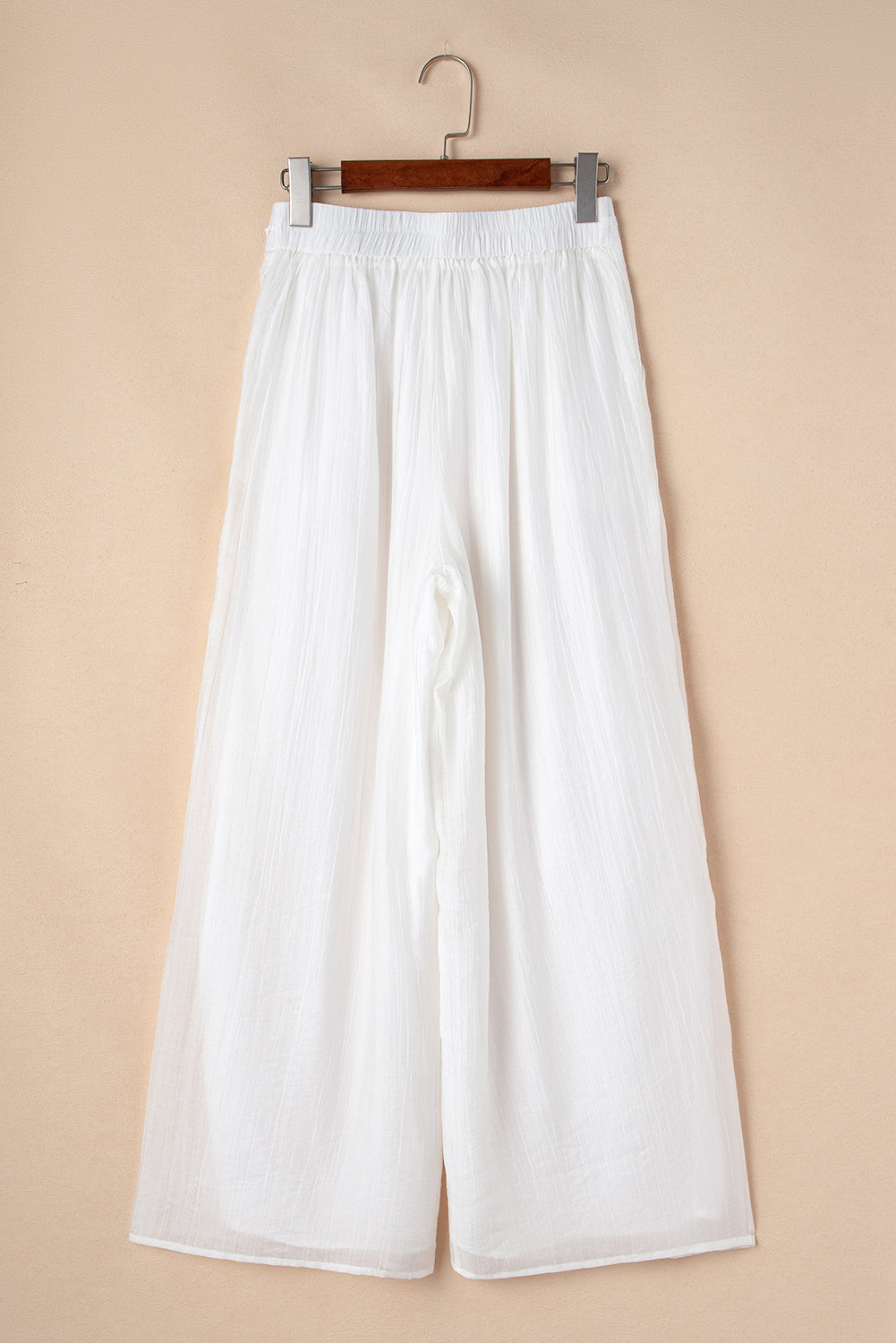 White Casual Tie Waist Pleated Wide Leg Pants