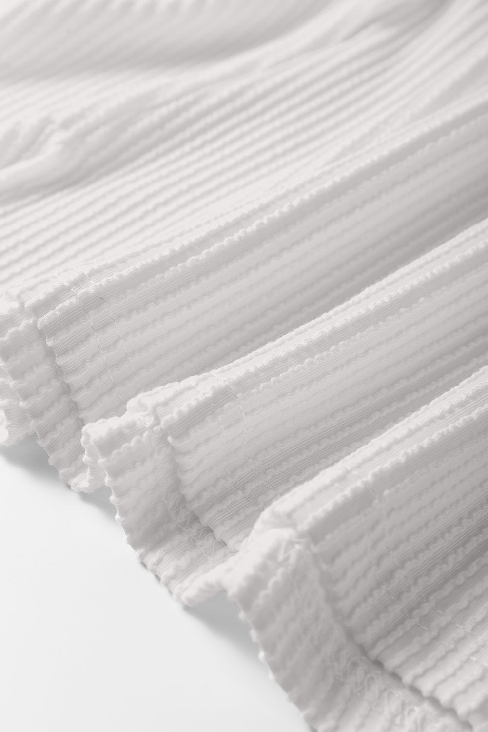 White Solid Color Corded Drop Shoulder 3/4 Sleeve V Neck Top