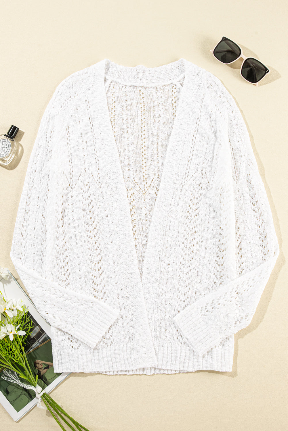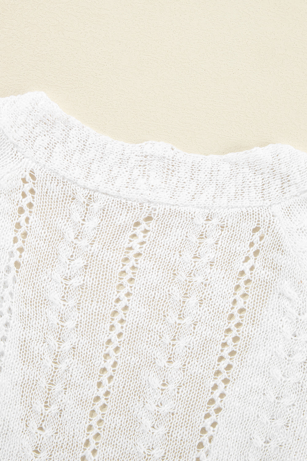 White Solid Open Knit Cardigan