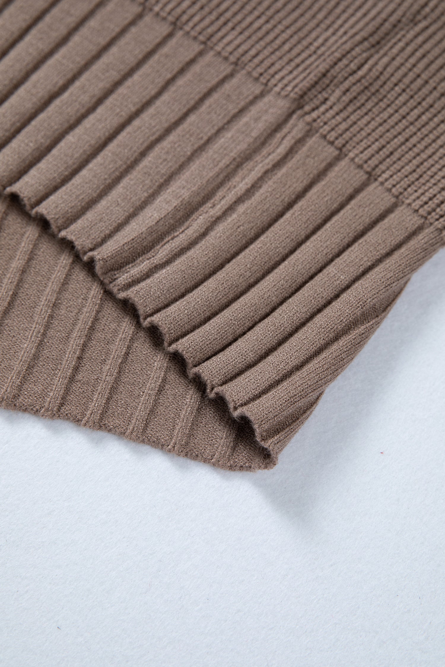 Goat Mixed Texture Knit Button V Neck Sweater Cardigan